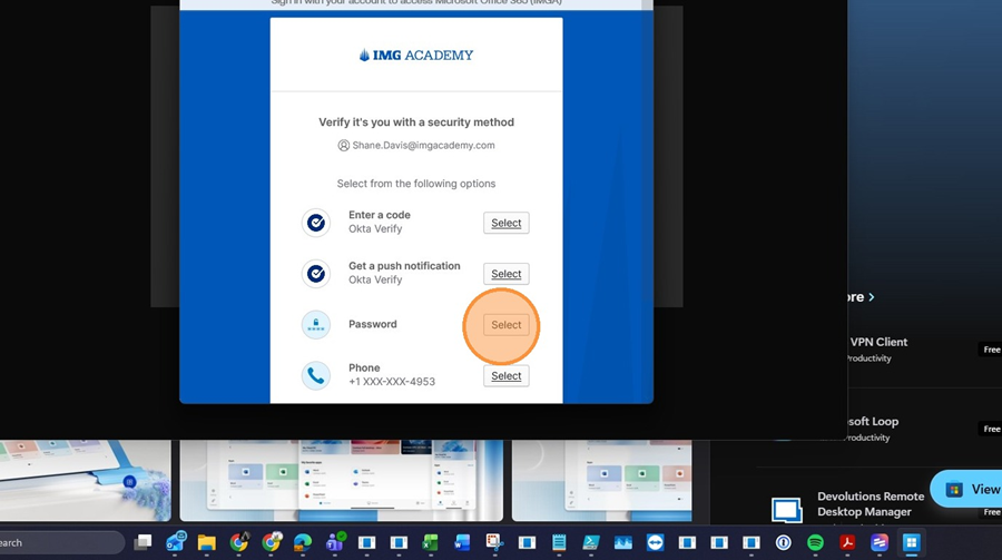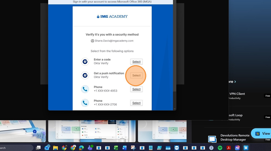 - Click "Select to get a push notification to the Okta Verify app."